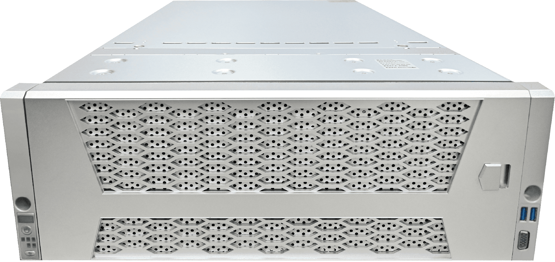 全新一代AI服務(wù)器PR4910E是寶德公司新推出的一款4U雙路機(jī)架式加速計(jì)算服務(wù)器。采用Intel C741高性能芯片組,支持第四代&五代英特爾®至強(qiáng)®可擴(kuò)展處理器;該機(jī)型擁有32個(gè)DDR5 DIMM插槽;默認(rèn)支持12塊3.5英寸熱插拔SAS/SATA/NVME硬盤;板載支持2個(gè)M.2 NVMe或M.2 SATA3硬盤;支持通過線纜和軟件支持切換不同的拓?fù)淠J剑恢С?0個(gè)全高全長雙寬的GPU插槽,默認(rèn)1個(gè)OCP3.0網(wǎng)卡插槽,可擴(kuò)展最大2個(gè)OCP3.0網(wǎng)卡插槽;支持多種不同網(wǎng)絡(luò)選擇:以太網(wǎng)、InfiniBand,OPA;可實(shí)現(xiàn)高速性能和I/O靈活性,滿足不同應(yīng)用程序的互聯(lián)需求; 板載集成BMC;支持IPMI 2.0遠(yuǎn)程管理; 支持4個(gè)2000W&2700W冗余電源。