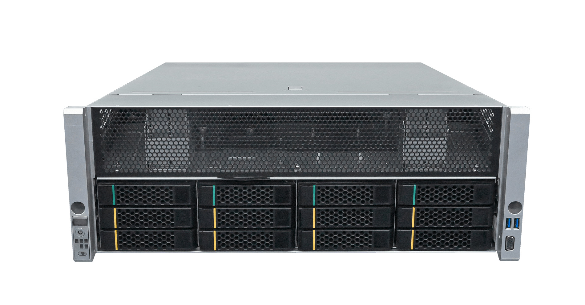 全新一代AI服務(wù)器PR4908E是寶德公司新推出的一款4U雙路機(jī)架式加速計(jì)算服務(wù)器。采用Intel C741高性能芯片組,支持第四代&五代英特爾®至強(qiáng)®可擴(kuò)展處理器;該機(jī)型擁有32個(gè)DDR5 DIMM插槽;支持12塊3.5英寸熱插拔SAS/SATA硬盤位,主板直連支持8個(gè)SATA盤,背板默認(rèn)支持2個(gè)NVMe U.2,最大支持12個(gè)NVMe U.2;板載支持2個(gè)M.2 SATA&NVMe硬盤;支持8個(gè)全高全長雙寬的GPU插槽,默認(rèn)1個(gè)OCP3.0網(wǎng)卡插槽;支持多種不同網(wǎng)絡(luò)選擇:以太網(wǎng)、InfiniBand,OPA;可實(shí)現(xiàn)高速性能和I/O靈活性,滿足不同應(yīng)用程序的互聯(lián)需求; 板載集成BMC;支持IPMI 2.0遠(yuǎn)程管理; 支持4個(gè)2000W&2700W冗余電源。